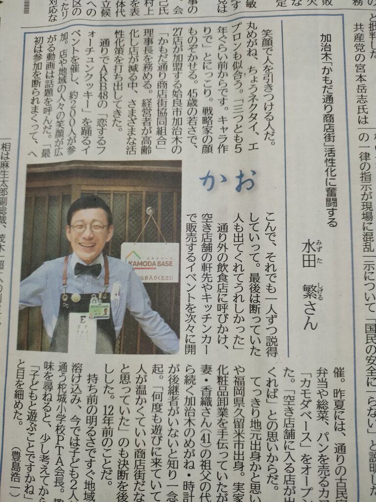 かもだ通り会協同組合の理事長がオーナーを務めるKAMODAベースが南日本新聞に取り上げられました。