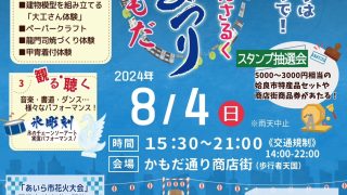 イベント 8月4日かもだんさるく開催 加治木港の花火大会の前に鴨田通りで恒例のかもだんさるくを開催します! ぜひご家族、友人お誘いの上、お越しください😊 物販 Honu Lei / ぎゃりぃぱちぱち工房 KAGAYAKI 輝 / Merrily_a ... 2024.07.24 イベント未分類