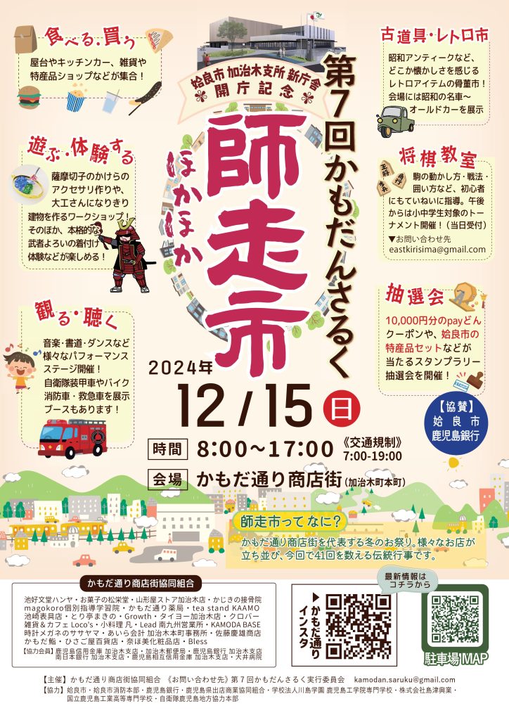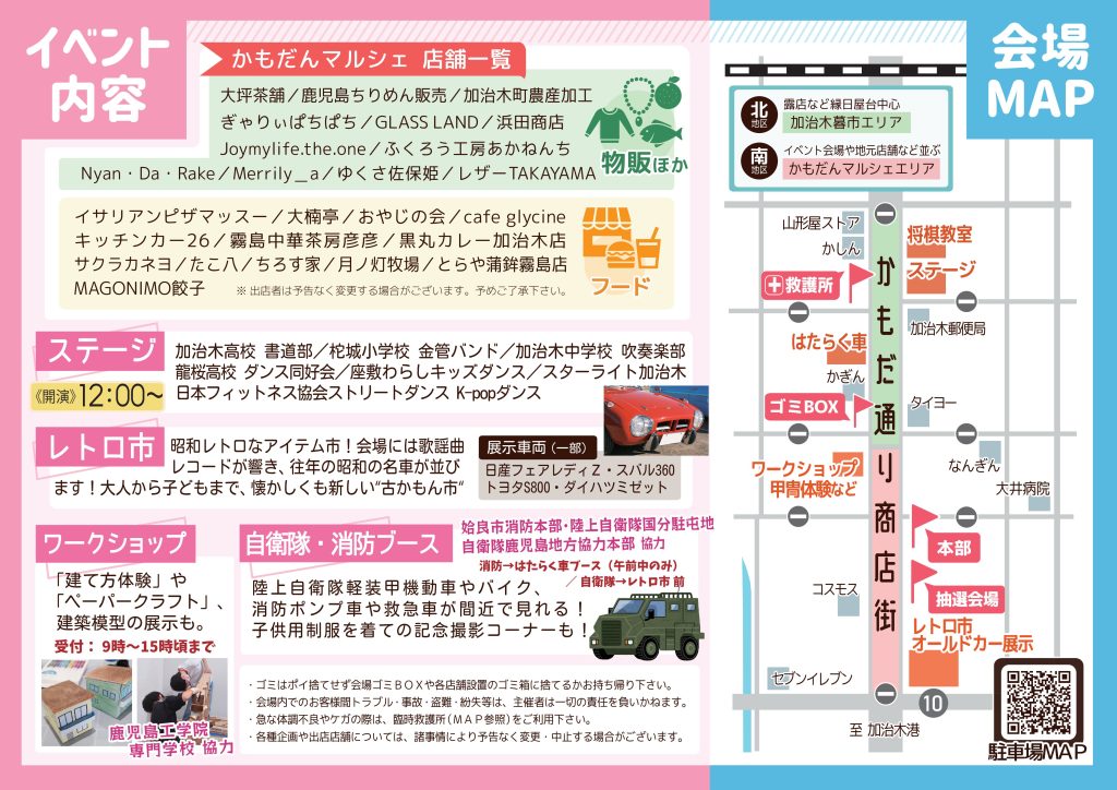 ・駐車場での事故盗難や各種トラブルについては、かもだんさるく実行委員会は一切の責任を負いません。予めご了承下さい。